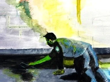 This commissioned piece, inspired by contractor Sal Ianelllo of Upstate RDM, captures Sal laying concrete, emphasizing the precision and strength inherent in his work.